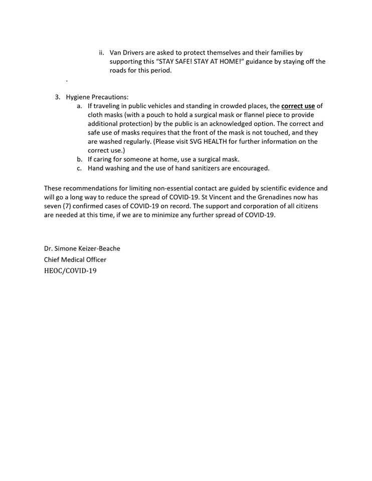 Kingstown (ON SVG) – The Ministry of Health, Wellness and the Environment, in an advisory issued on Sunday has advised against physical church gatherings and other public gathering activities for the Easter weekend.