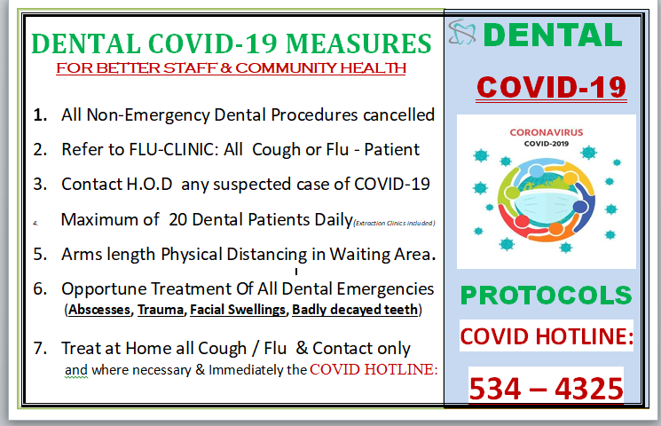 7. Treat at home all cough and flu and contact only and where necessary and immediately the Covid-19 hotline at 1 784 534 – 4325
