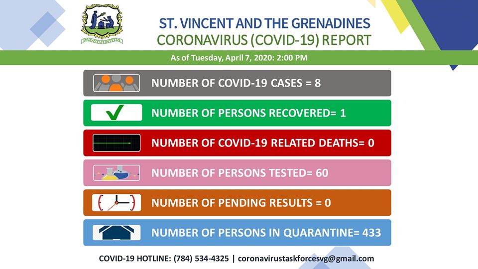 The new data released stated that there are now eight confirmed (8) cases of the Coronavirus in St. Vincent and the Grenadines.