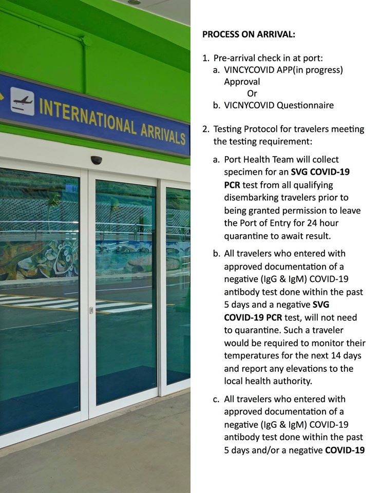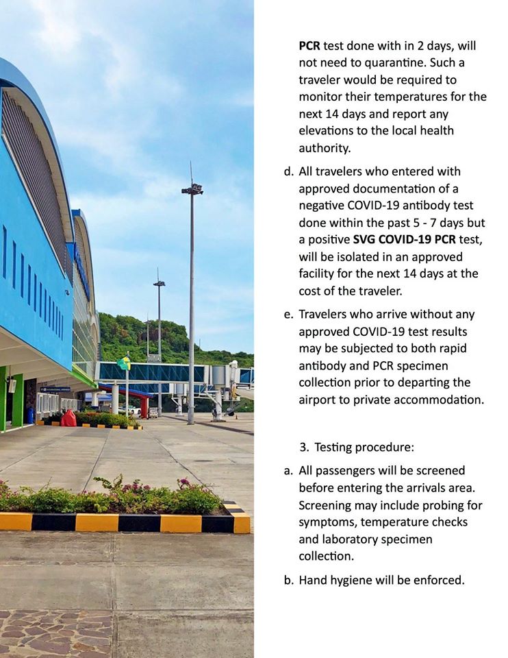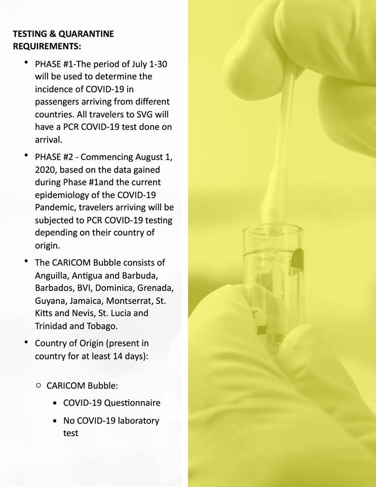 All travelers will also have a PCR COVID-19 test done upon arrival to St. Vincent in the July 1 to July 31 period, which is considered phase one.