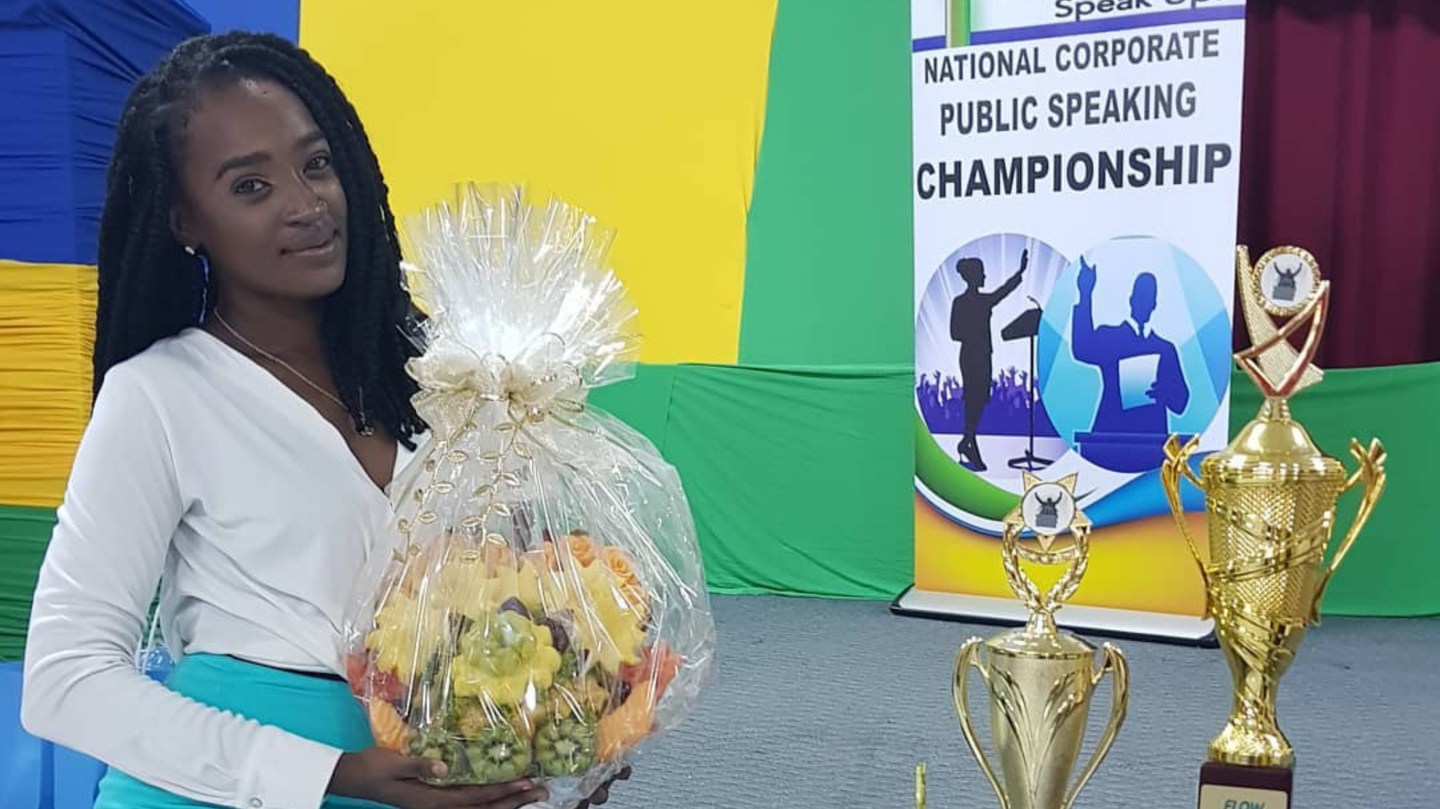 Nicolette Nichols of the Treasury Department won third place in the prepared speech competition and was awarded EC$1,000 and a special package from FLOW, the organizers say.