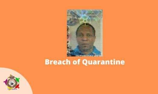 According to the bulletin, the police is strongly advising that Mr. Andrew Phillip King, a British citizen who has breached quarantine, contact the Health Services Subcommittee of the National Emergency Committee/COVID-19 Task Force, Ministry of Health, Wellness and the Environment immediately.