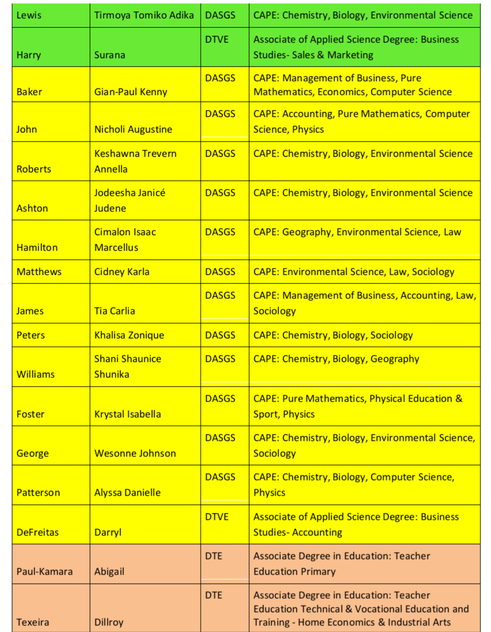 Of particular significance is the fact that graduates of Associate Degree programmes at all divisions of the Community College, including the Divisions of Teacher and Nursing Education, and Technical/Vocational Studies are eligible for awards under the National Scholarship Programme. Of the fifty eight (58) awardees, twenty seven (27) are graduates of the various Associate Degree programmes developed or franchised by the Community College, with one (1) person receiving a National Scholarship, one (1) person receiving an Exhibition Scholarship, three (3) individuals being granted a Developmental/Special Awards, and twenty two (22) others awarded Partial Scholarships/Bursaries.
