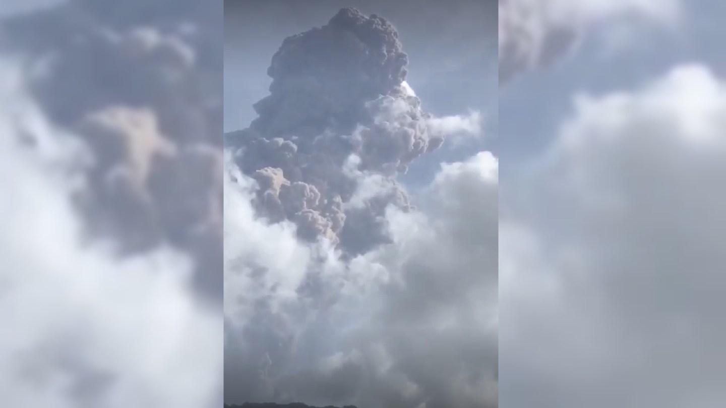 Kingstown, St. Vincent: The ash plume created by the explosive eruption of La Soufriere on Friday has reached a distance of some 20,000 feet in the air.