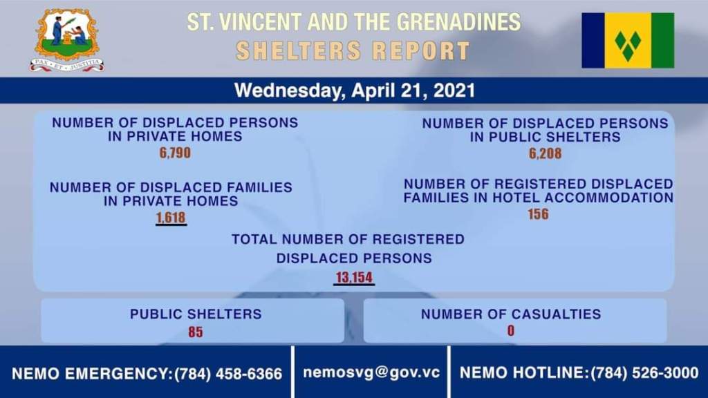 According to the April 21 update from the National Emergency Management Organization – NEMO, more than 6,200 of those displaced are in State shelters.