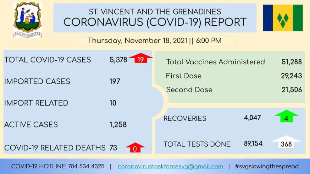 Meanwhile, the number of people who took at least one dose of a COVID-19 vaccine in St. Vincent and the Grenadines has jumped by 988 since November 15.