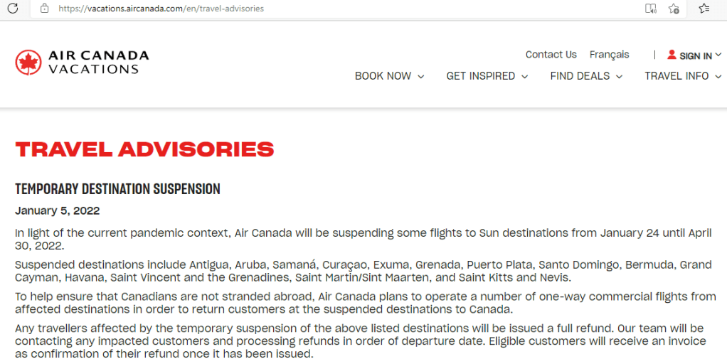 This was confirmed in a TRAVEL ADVISORY posted on the company’s website on January 5.