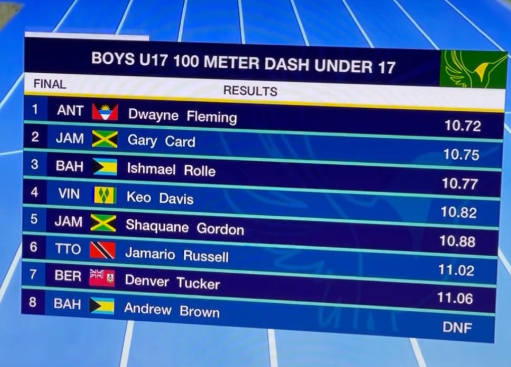 Vincentian sprinter Keo Davis temporarily fell short of his true position in a 100 meter race at the CARIFTA games currently being held in Jamaica.