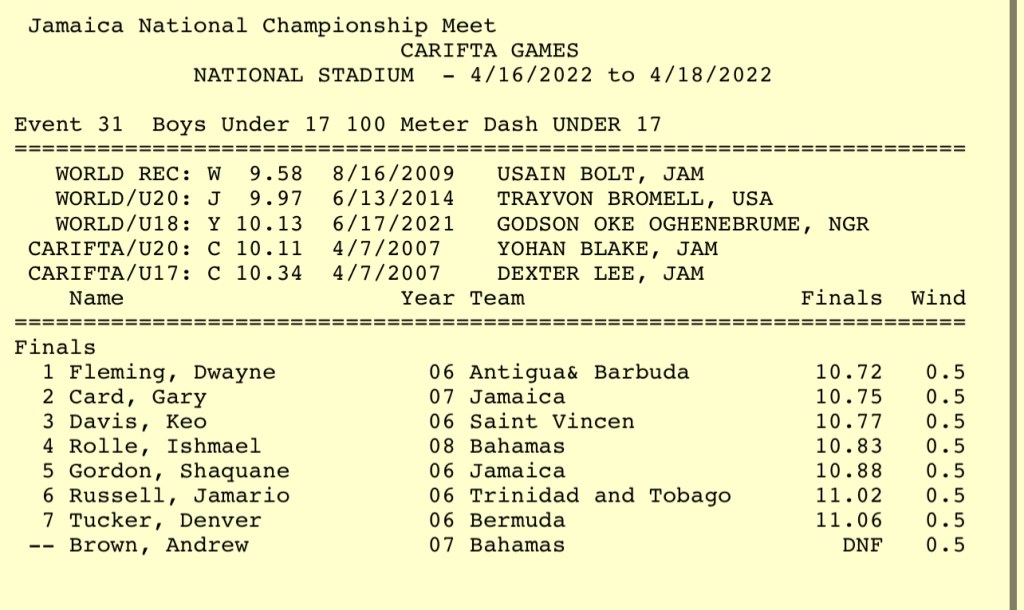 That was the view of many individuals on social media who watched the finals of the Boys Under 17 – 100 meter race on Saturday, April 16, 2022.