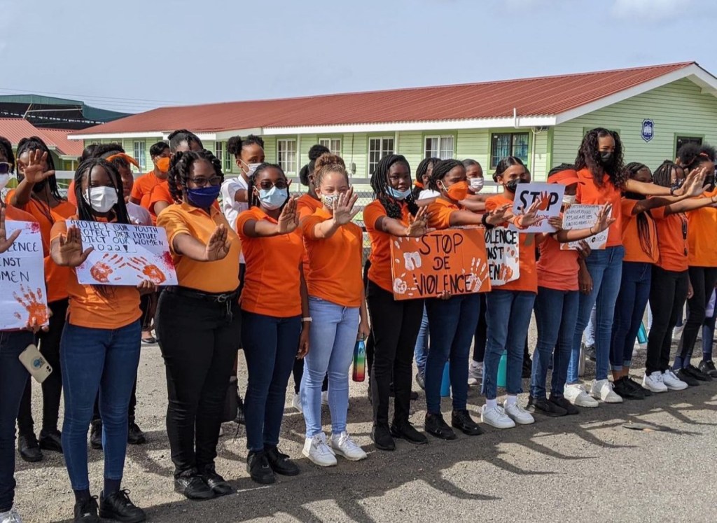 Today’s demonstration against violence was coordinated by the St. Vincent Girls’ High School with support from the St. Vincent Boys’ Grammar School. Students and staff wore orange.