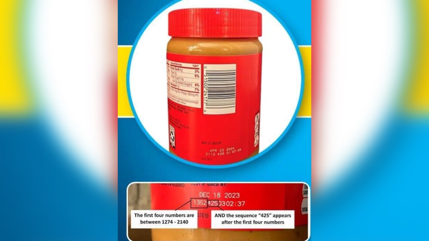 The recall only applies to lot code numbers between 1274425 – 2140425, only if the first seven digits end with 425 (manufactured at the JM Smucker Facility in Lexington, Kentucky).