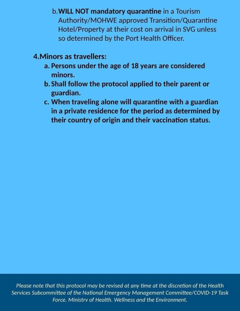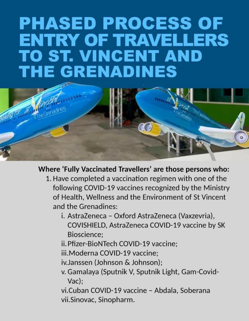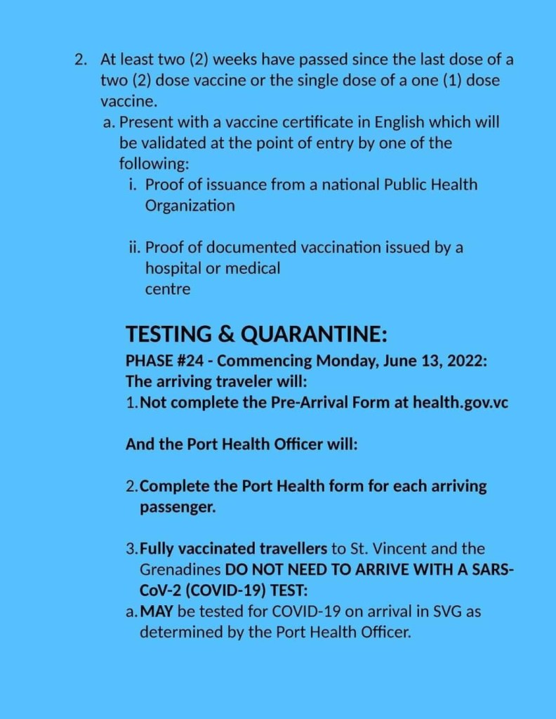 Fully vaccinated travelers to St. Vincent and the Grenadines – SVG will not be required to complete a pre-arrival form or have a Covid-19 test result from Monday, June 13, 2022.