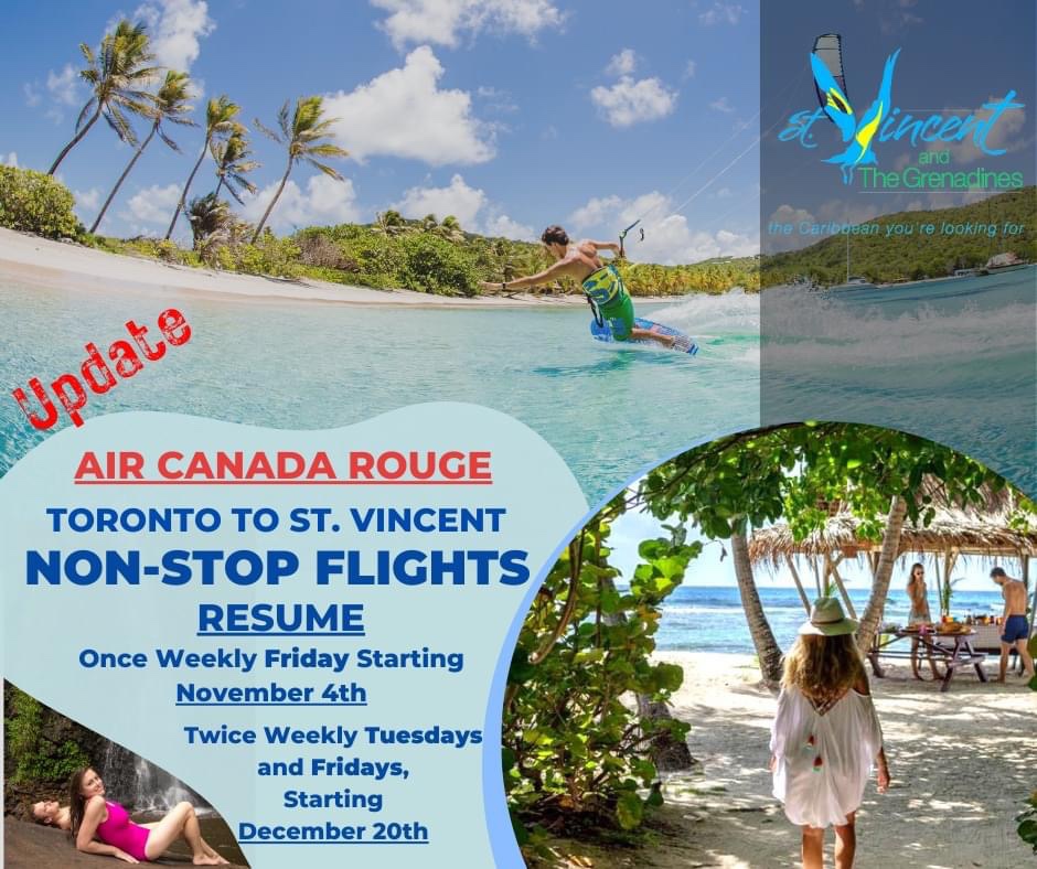 The Saint Vincent and the Grenadines Tourism Authority has confirmed that Air Canada Rouge will resume its non-stop flight service here.