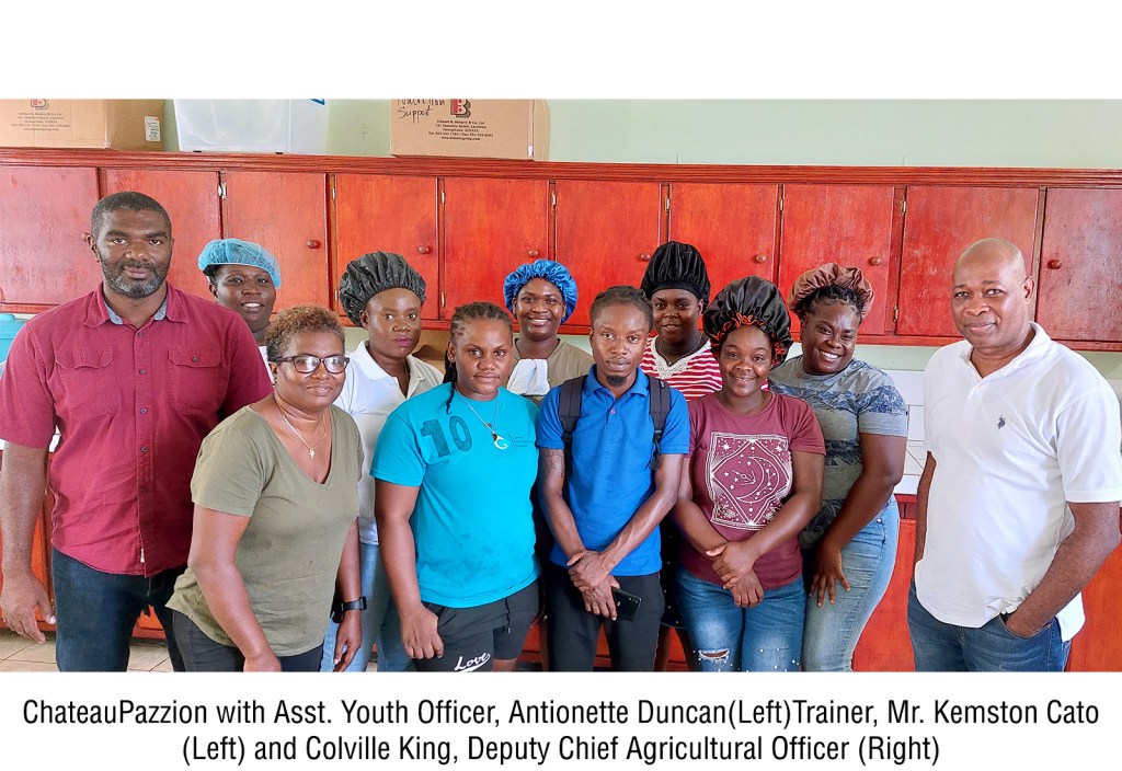King stated that since the inception of the project in October 2021, the Innovative Youth Agribusiness Multipurpose Cooperative (IYAMCO) in Layou and Youth Agribusiness Multipurpose Cooperative (YAMCO) in Biabou have established small farm plots, with support from the Ministry of Agriculture. They are cultivating a range of commodities, some of which will be used in their value-added product. These crops include: chive, celery, cabbage, sweet corn, sweet pepper and water melon. These farm plots will be used as a platform for training of group members.