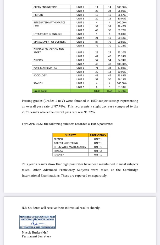 This country’s results for the 2022 sitting of the Caribbean Examinations Council – CXC, Caribbean Advanced Proficiency Examinations – CAPE were released today (September 17) by the Ministry of Education.