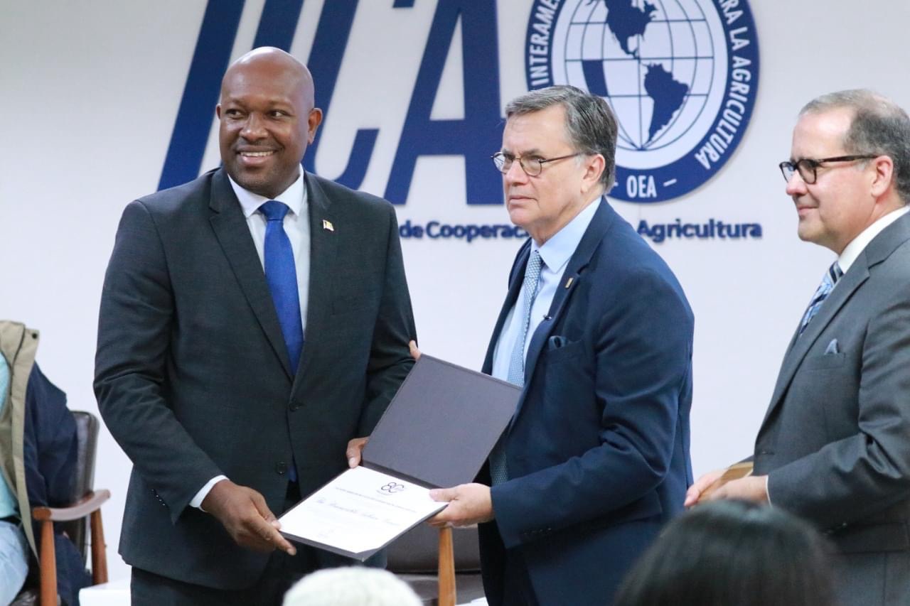 The Minister noted in his acceptance speech that the work of past leaders in IICA provides very strong shoulders upon which we can stand to build a positive future as we advance towards 100 years of existence.