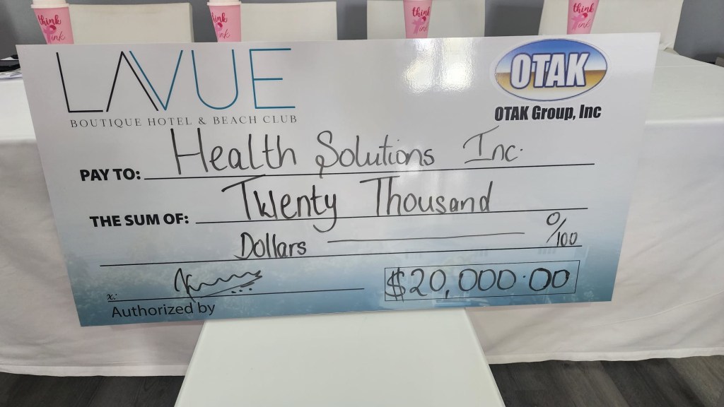 Mrs. Nicole Mager of OTAK Group Inc, a Florida based construction company said ‘Before we arrived in July of 2022, our company which is a Florida based company owned by Mr. Aaron & Donna Cato, one of our pre arrival meetings with them, they really wanted us to look for an opportunity to give back to the island. When we noticed La Vue’s campaign for the Breast Cancer awareness, we knew that we wanted to jump on board with them.”