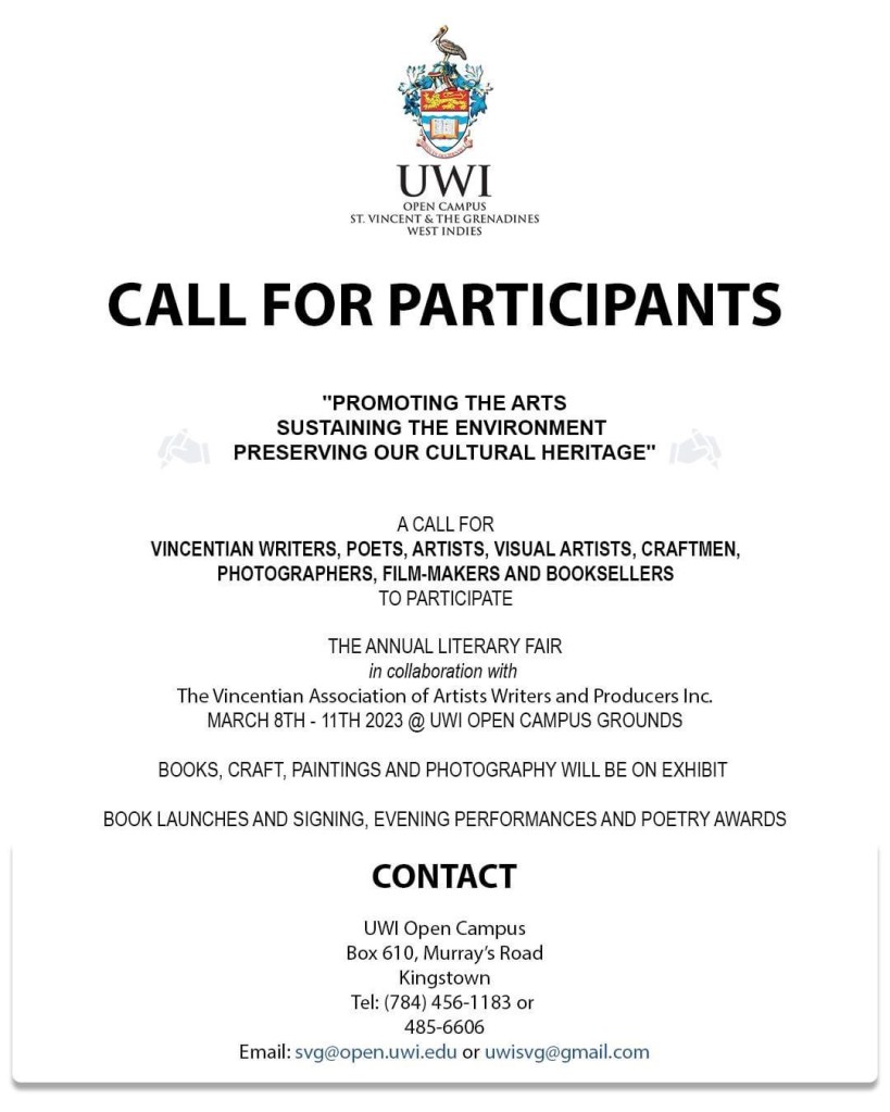 The University of the West Indies Open Campus St. Vincent and the Grenadines is inviting creative people to participate in its Annual Literary Fair.