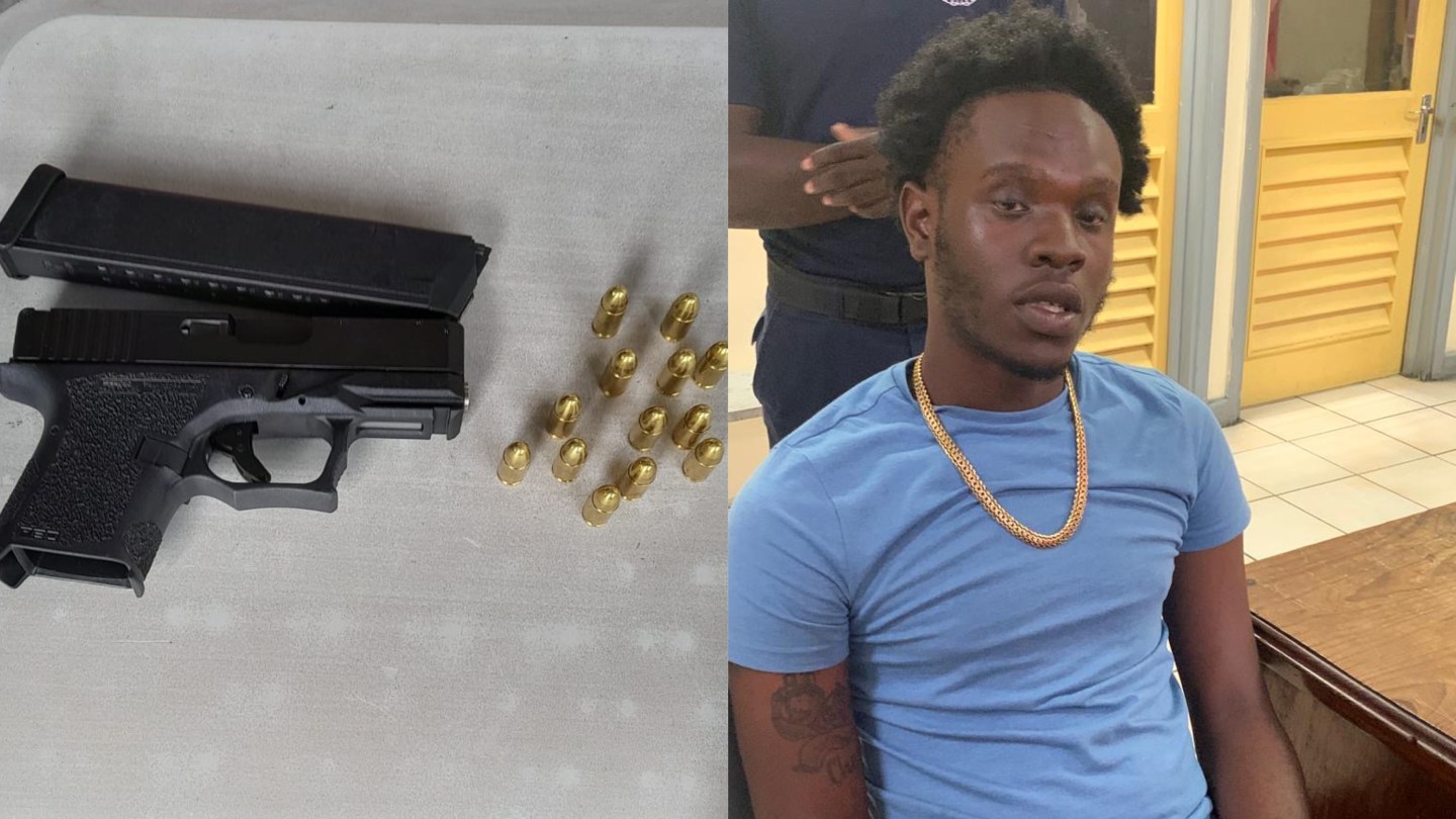 January 18, 2023, Kingstown – During routine checks at the Grenadines wharf, members of the Royal St. Vincent and the Grenadines Police Force attached to Port intercepted a motor vehicle, registration PE 35 driven by Jermaine Andrews, an eighteen-year-old of Cane Garden. A search was conducted on his person and the vehicle and one Glock pistol and twenty-four rounds of ammunition were discovered.