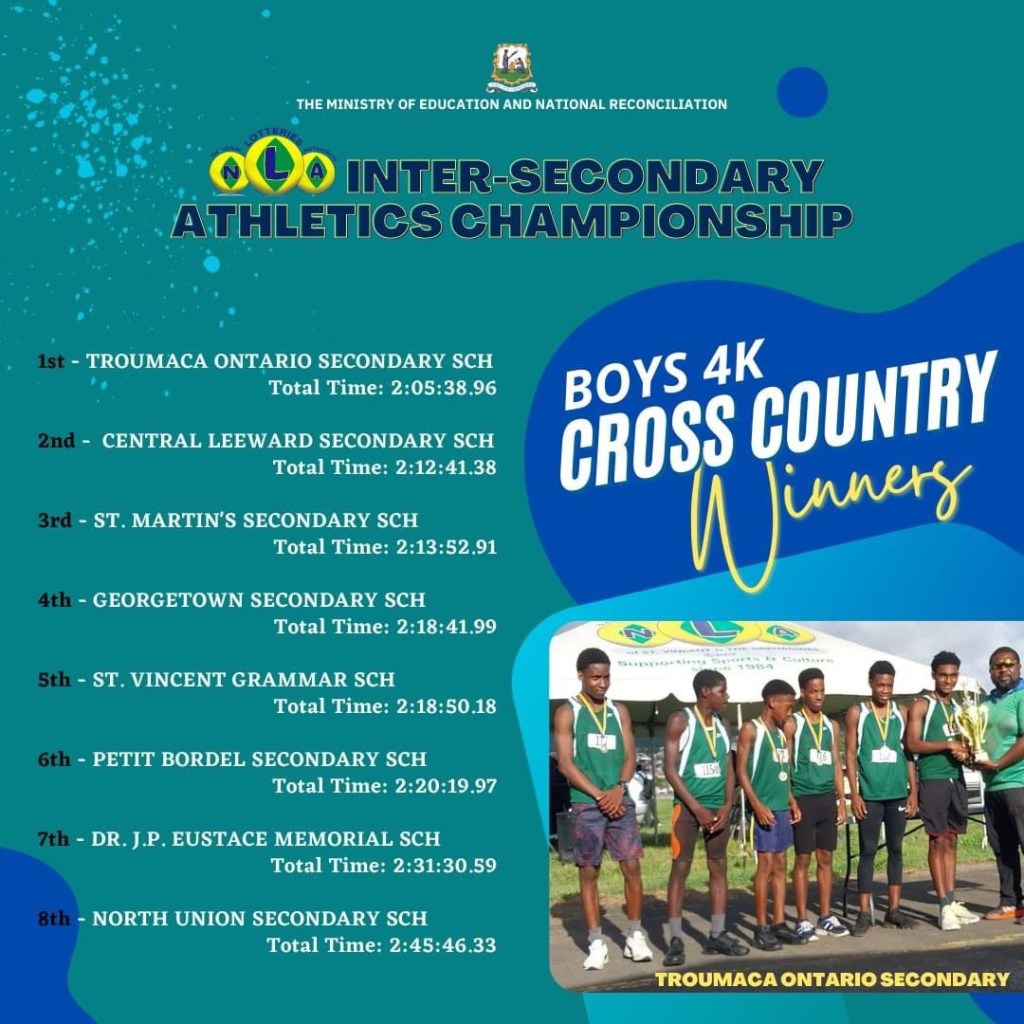 The Central Leeward boys also recorded competitive finishing times and collectively took second place.