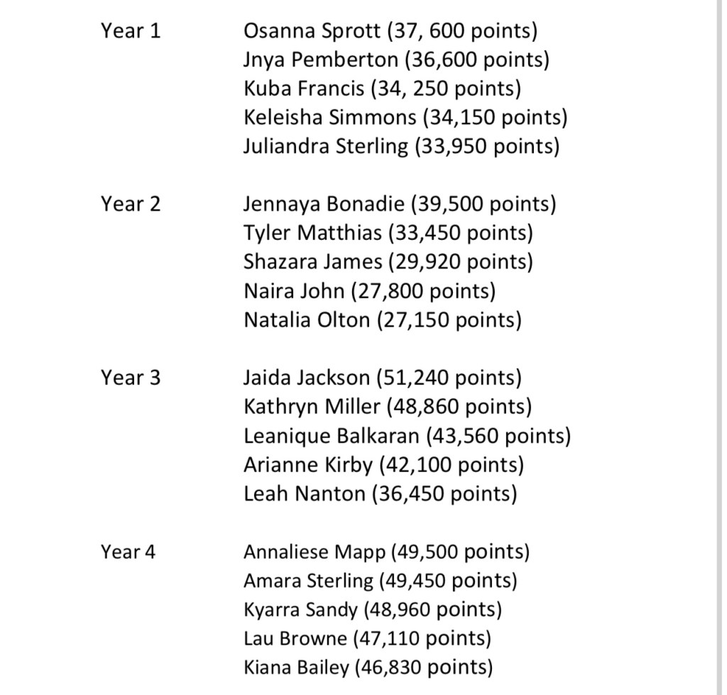 In the various year levels, the following Girl Guides received awards for the outstanding performance: