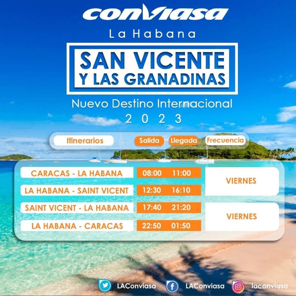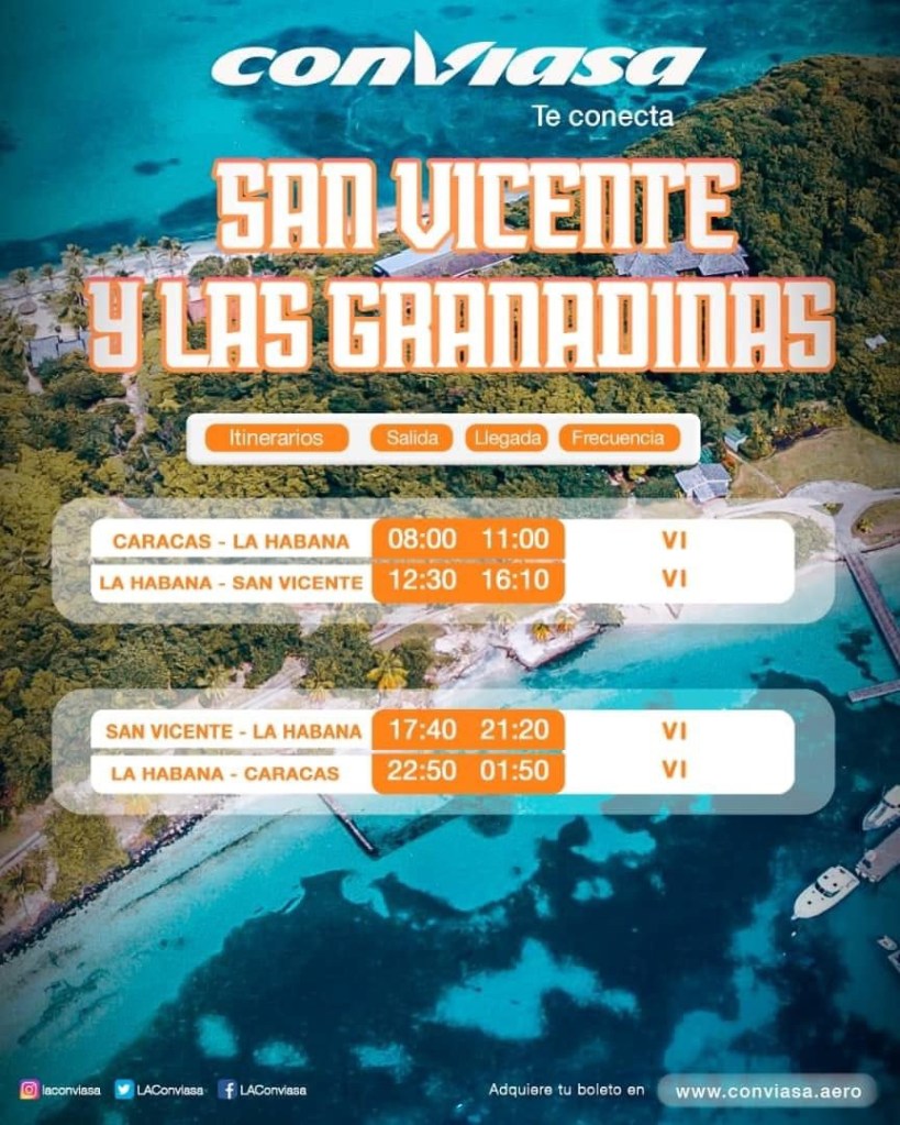 Venezuela-based airline Conviasa has announced a new flight between St. Vincent and the Grenadines and Cuba.