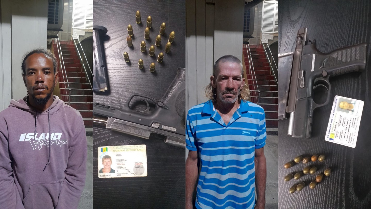 Both men were later arrested and charged with Possession of Firearms and Ammunition without a license issued under the Firearms Act and Possession of a Controlled Drug.