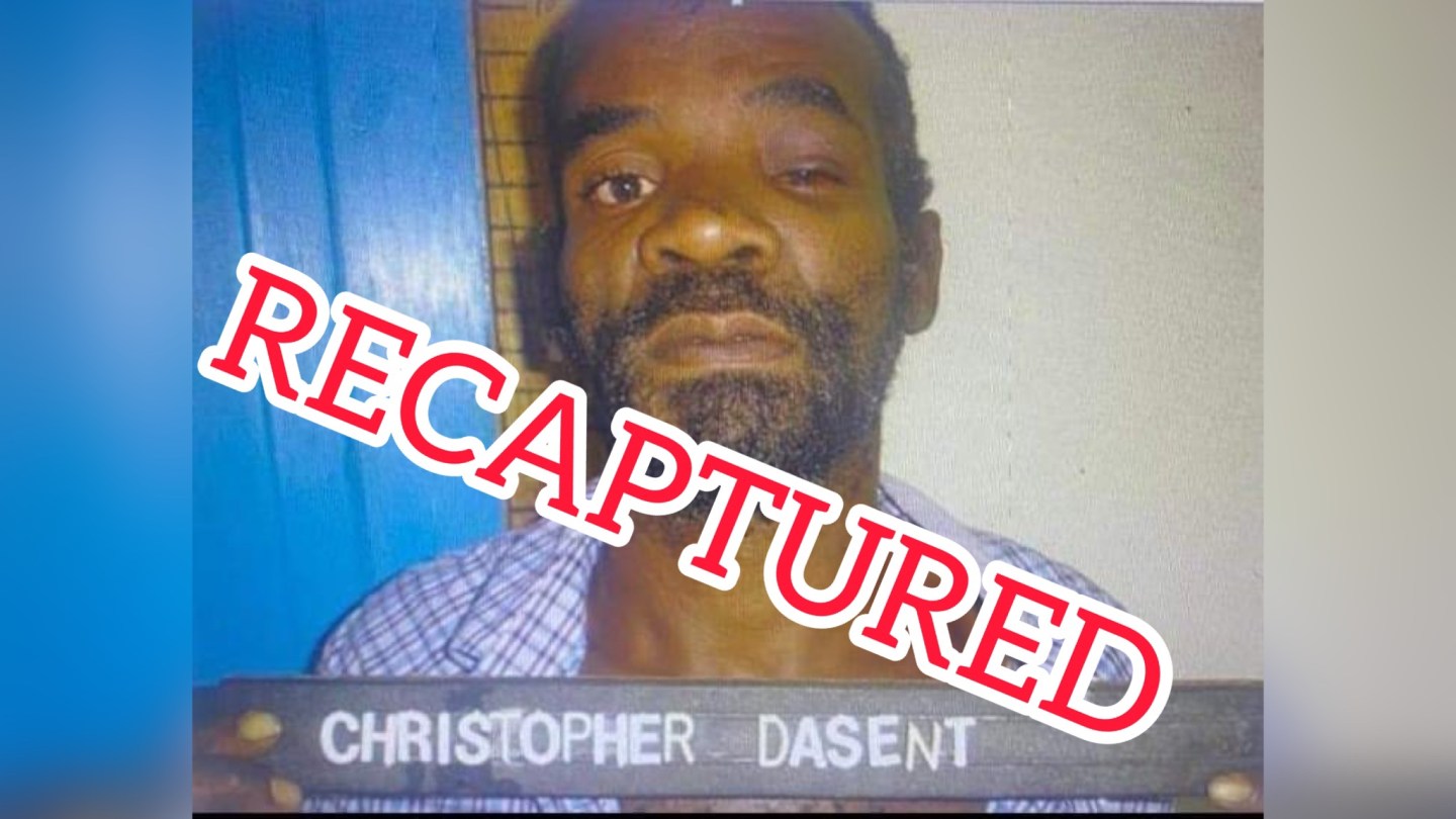 Police announced Sunday that escaped prisoner Christopher Dasent has been recaptured.