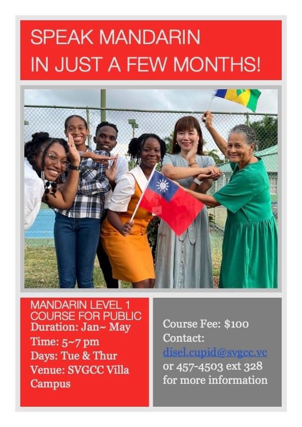 Vincentians desirous of learning Mandarin can do so on January 2024 at the Villa Campus of the St. Vincent and the Grenadines Community College (SVGCC).