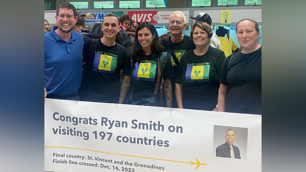 According to AwardWallet, Before visiting Saint Vincent and the Grenadines, Ryan’s final few countries included Dominica, Nauru, and Turkmenistan.