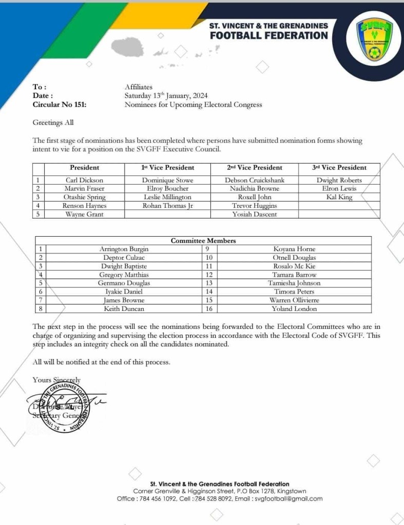 The SVGFF Executive Council elections are set for Saturday, January 27th, 2024.