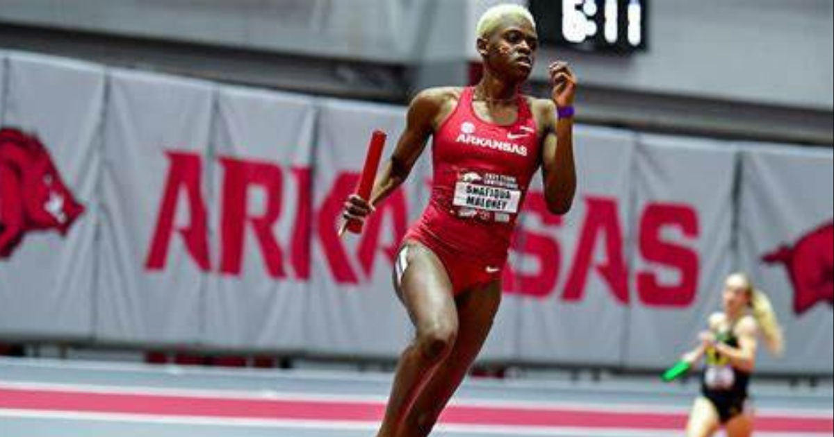 Her record is 1:58:69 for the indoor meet in 800m Arkansas, her best time yet.