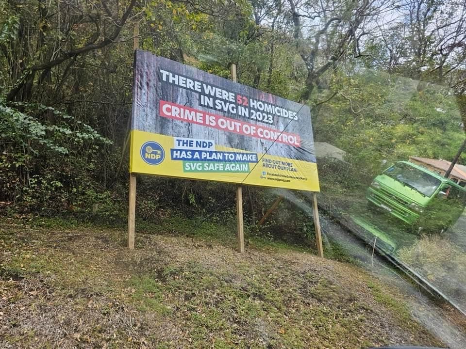 It was erected by the main opposition New Democratic Party – NDP with the caption “There were 52 homicides in 2023. Crime is out of control. The NDP has a plan to make SVG safe again”.