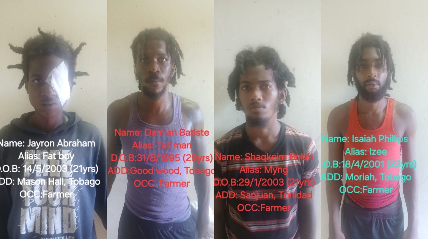 Police say, Isaiah Phillips, a 23-year-old farmer, Jayron Abraham, a 21-year-old farmer, Damian Baptiste, a 29-year-old farmer, and Shaqkeim Bolah, a 21-year-old farmer, all residents of Trinidad and Tobago, with the offences of Possession of Controlled Drugs and Drug Trafficking.