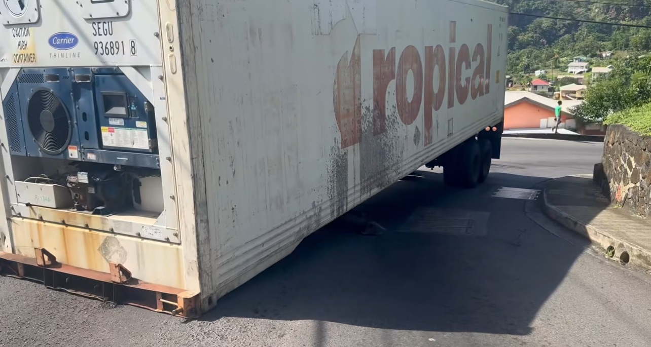 The Royal Saint Vincent and the Grenadines Police Force (RSVGPF) has advised the public of a road safety hazard caused by a fallen container that is currently obstructing the flow of traffic on the Leeward side of St. Vincent.