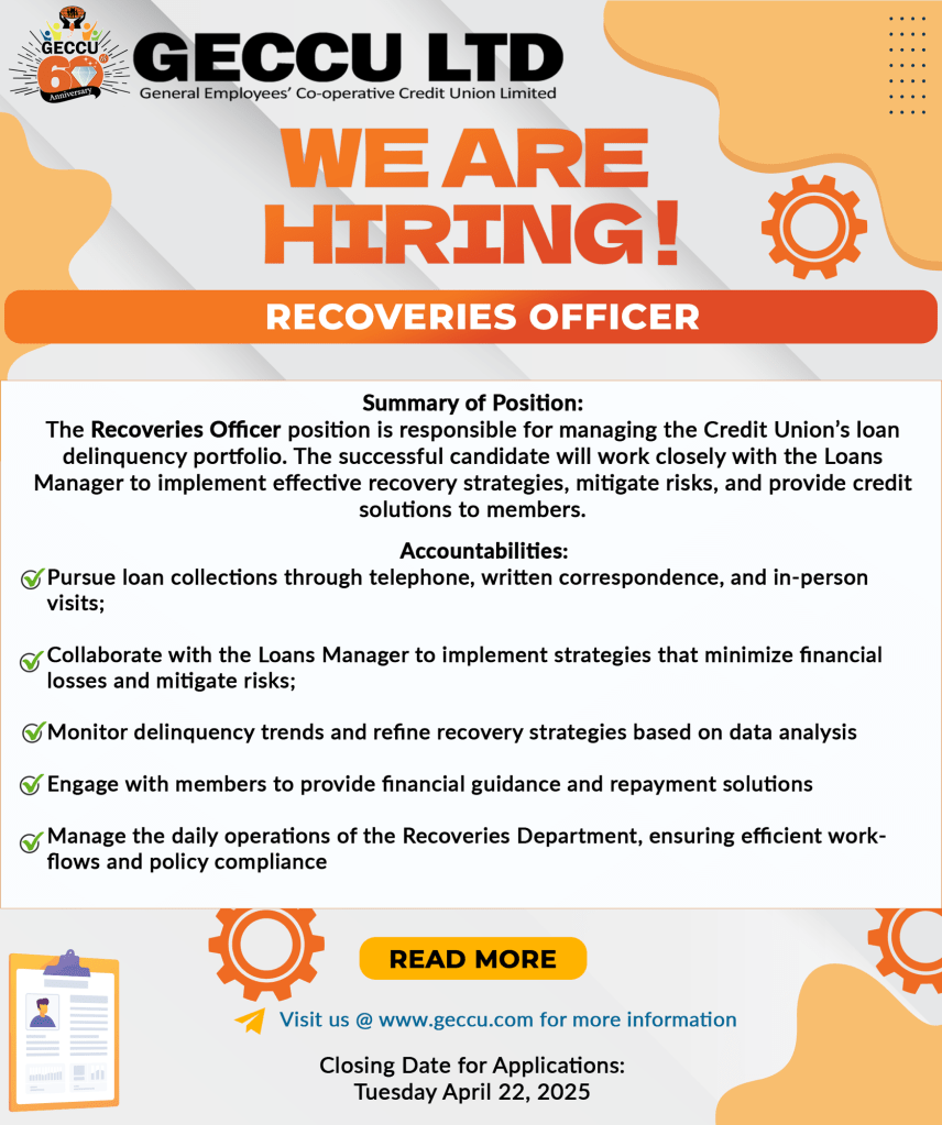 VACANCY #3: Recoveries Officer at the General Employees Cooperative Credit Union (GECCU)