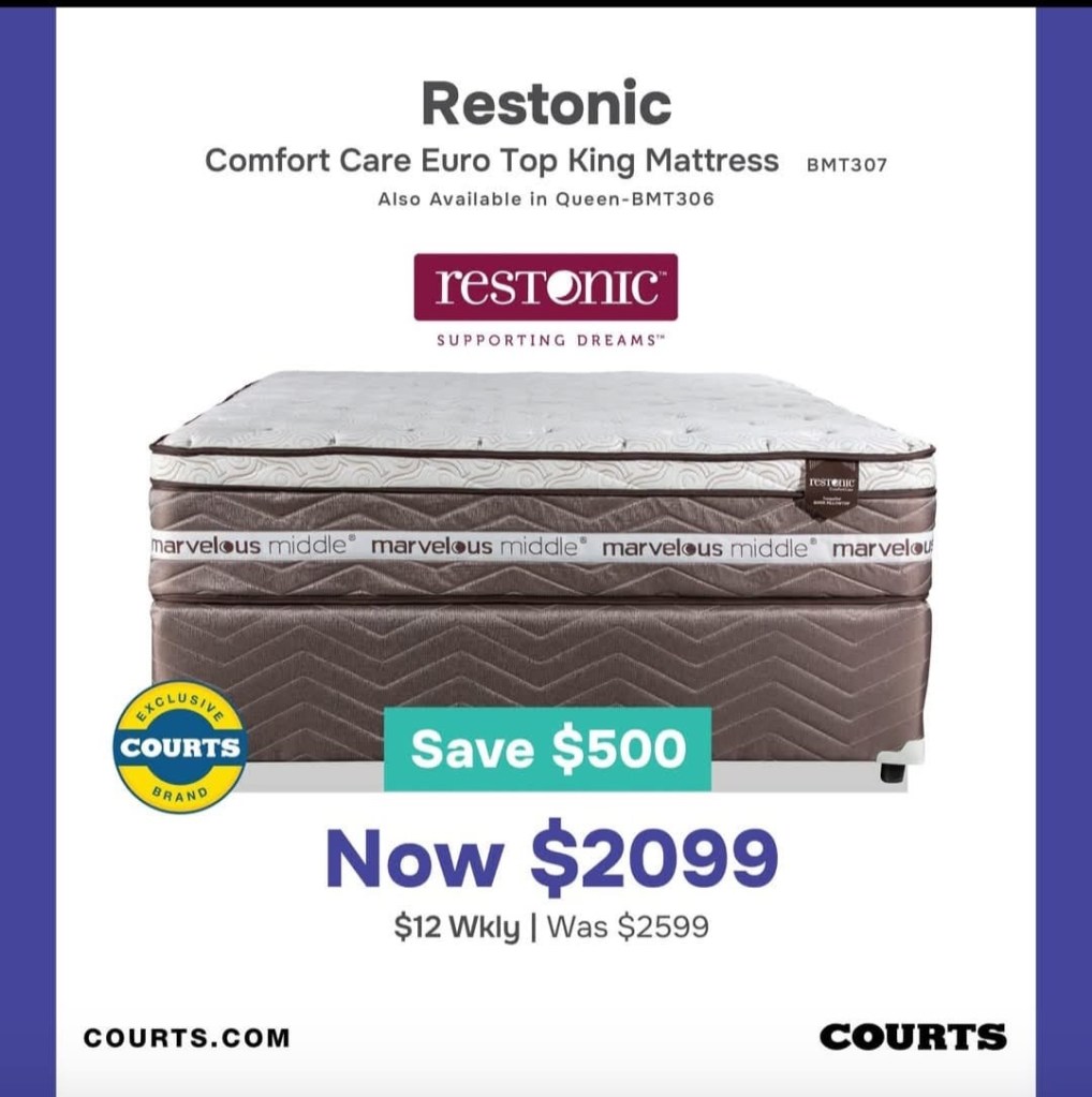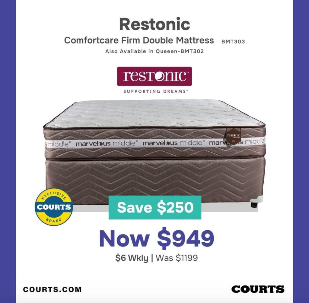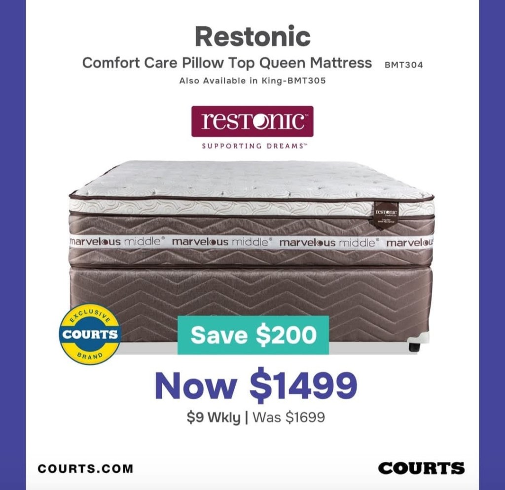 Right now, courts offers premium mattresses starting at just $199 designed to alleviate neck and back discomfort, giving you the restorative sleep your body demands. Our mattresses help you wake up refreshed and pain-free.