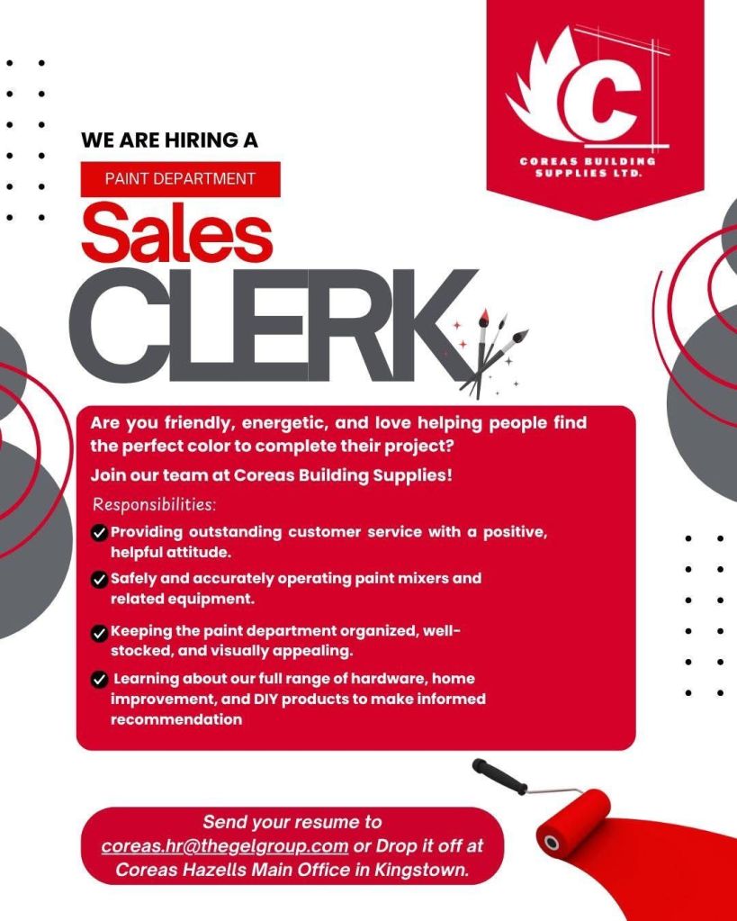 Vacancy #1: Sales Clerk (Coreas Building Supplies LTD.)