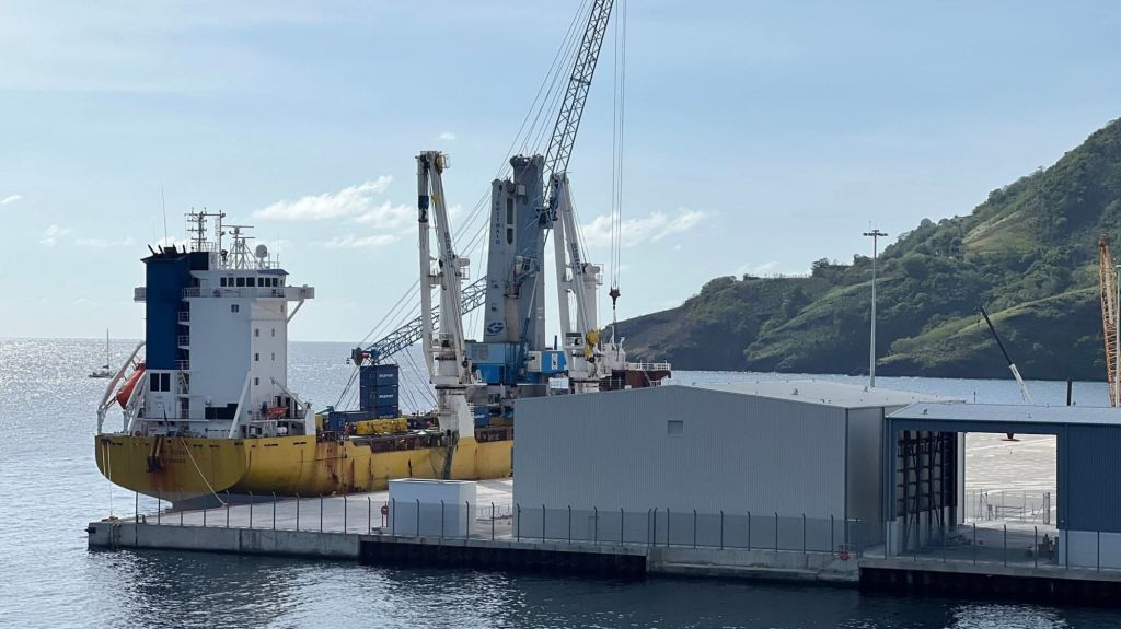 Speaking at the site, the Prime Minister highlighted the arrival of two critical pieces of machinery: a state-of-the-art container scanner valued at US$2.5 million, and a towering green crane priced at US$5.9 million. Together, these assets represent an investment of over US$8 million, part of the broader US$40 million port modernization package approved by Parliament.