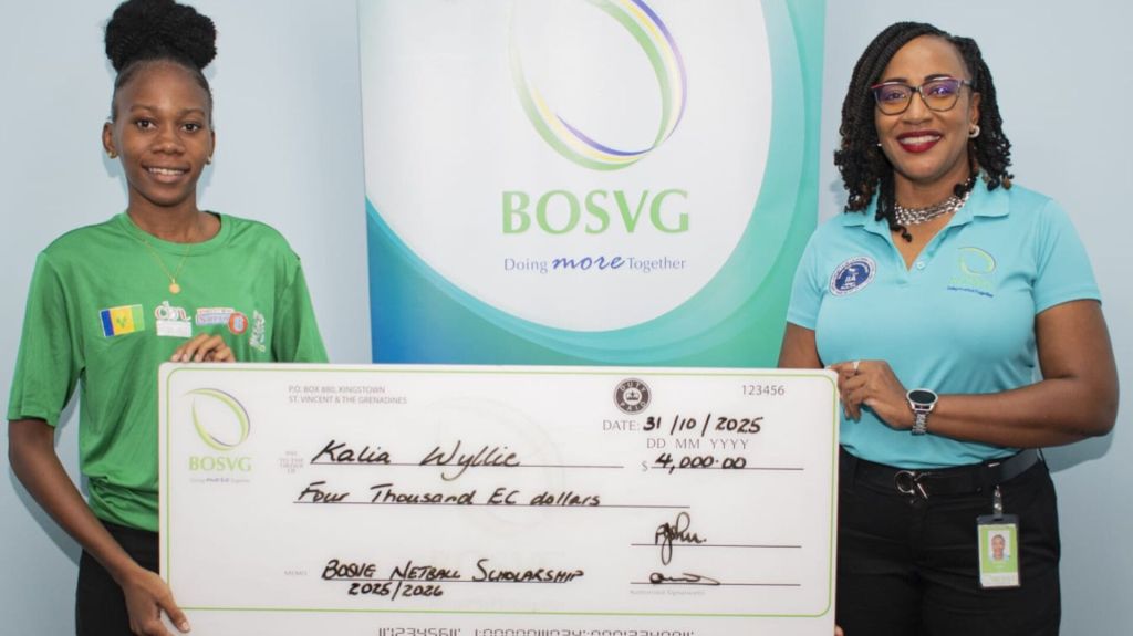 Ms. Kalia Wyllie, a promising netball athlete, has been awarded a two-year scholarship to the St. Vincent and the Grenadines Community College through the Bank of St. Vincent and the Grenadines’ (BOSVG) Netball Scholarship, supporting the advancement of her academic and sporting journey.