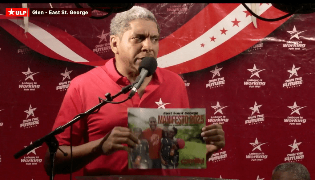 Glen East St. George November 20th, 2025- At a public meeting in Glen, East St. George, constituency representative Camillo Gonsalves presented his manifesto, framing the campaign around what he called “the power of six.” Drawing on imagery from dominoes, cricket, and tennis, he told supporters that just as he loves to play double six or hit a six on the field, he intends to deliver six clear priorities for the people of East St. George in the upcoming November 27 election.