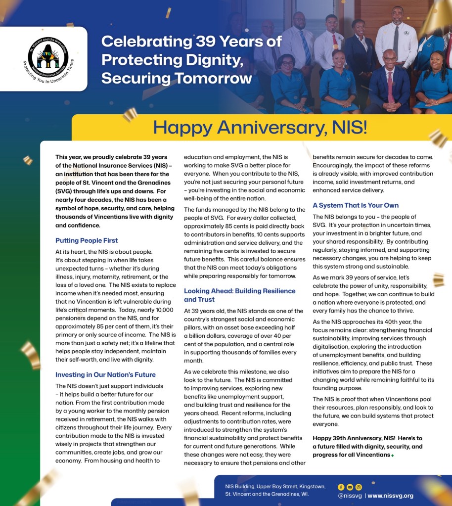 Happy 39th Anniversary, NIS! Here’s to a future filled with dignity, security, and progress for all Vincentians.