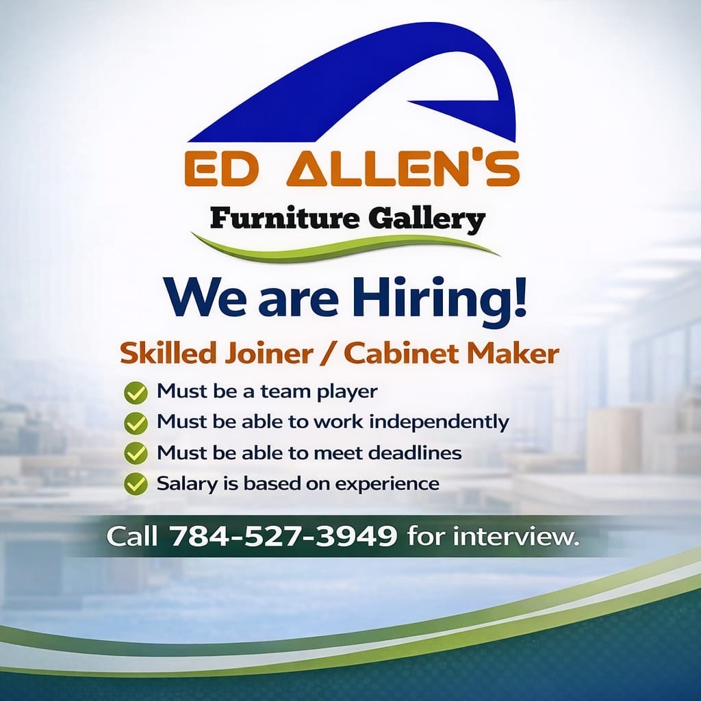 Ed Allen’s Furniture Gallery is hiring a skilled Joiner/Cabinetmaker.