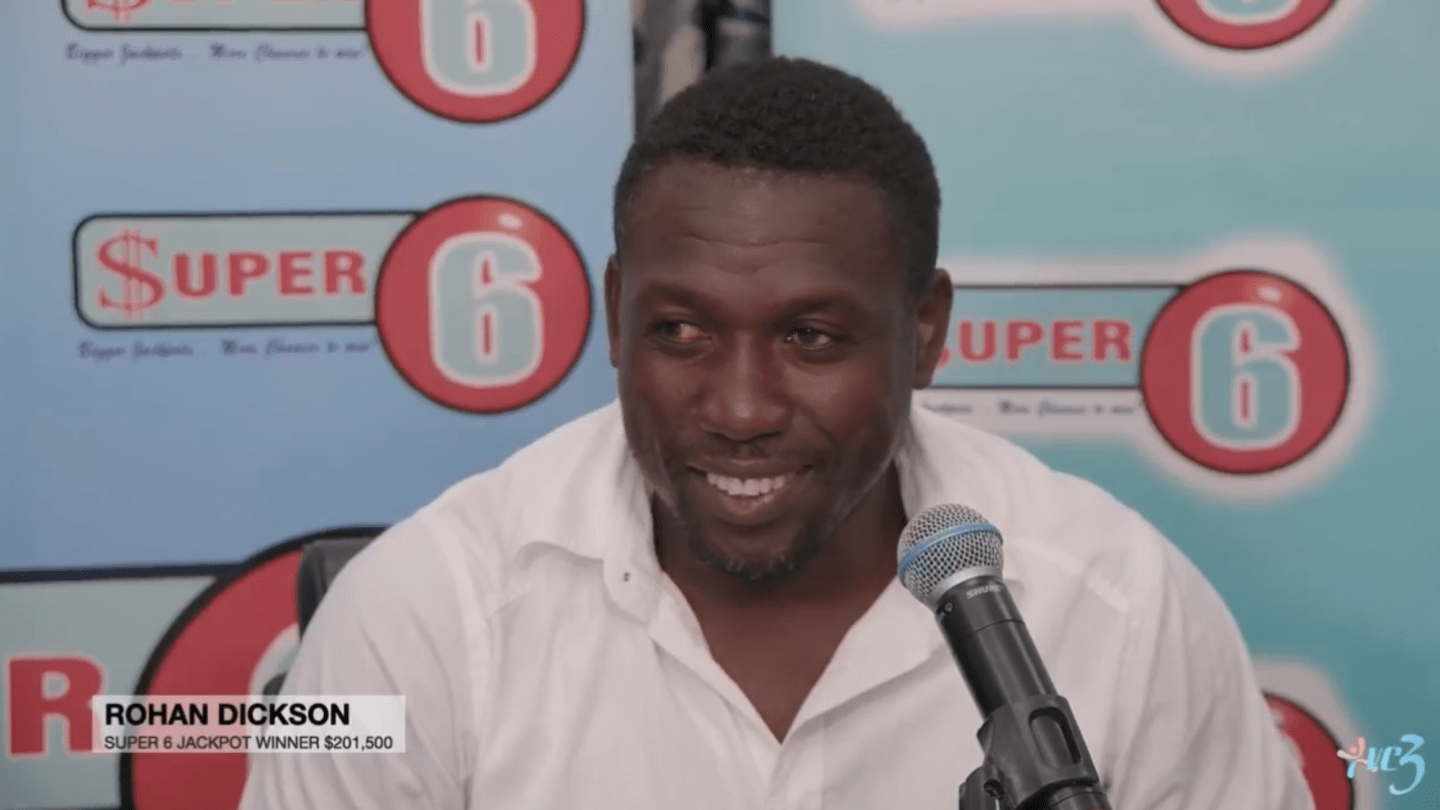 Mr Rohan Dickson is the first Super 6 jackpot winner from St Vincent and the Grenadines for the year 2026. He shares the jackpot of XCD $403,000 with a winner from Grenada, who also played the same numbers for the March 31 draw.